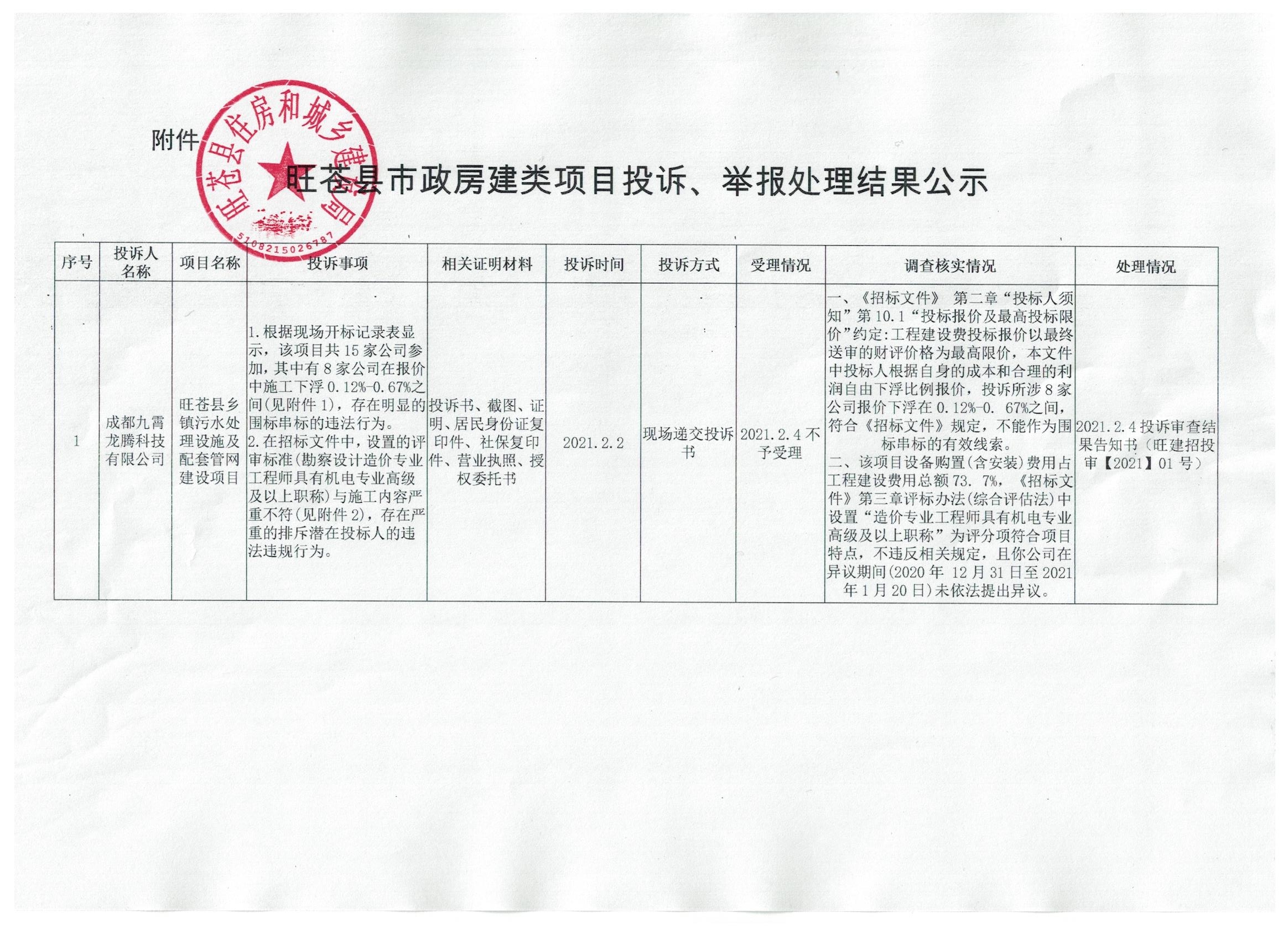 旺苍县市政房建类项目投诉、举报处理结果公示