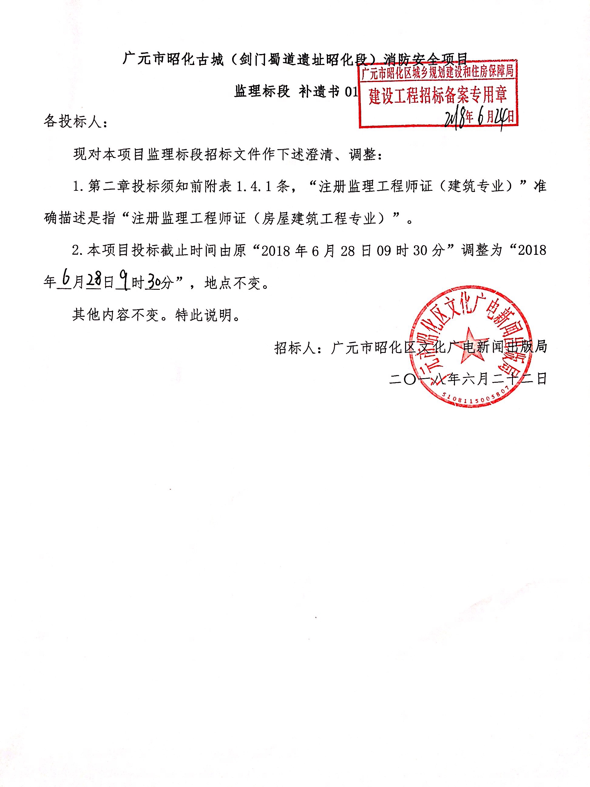 1.第二章投标须知前附表1.4.1条,“注册监理工程师证(建筑专业)”准确描述是指“注册监理工程师证(房屋建筑工程专业)”。