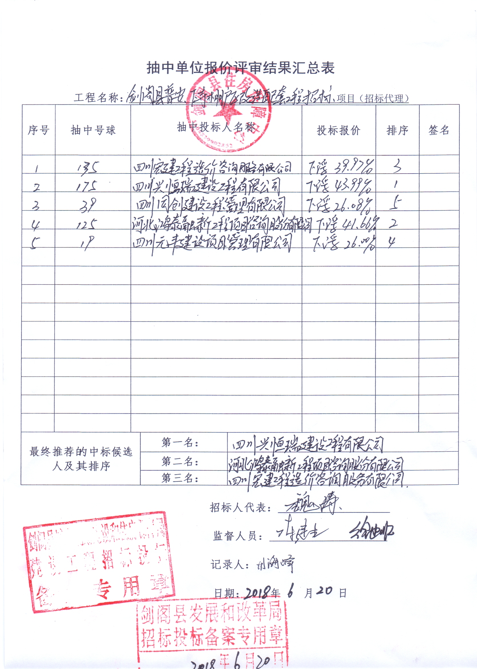 [其他结果公示]剑阁县普安、下寺棚户区改造配套工程项目(招标代理)招标中标公示